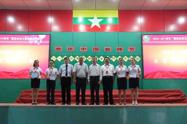 9月10日,缅甸新世纪教育(CPEC)曼德勒新世纪国际学校隆重庆祝中国教师节并表彰2018-2019学年华文教育优秀教师。中国驻曼德勒总领馆王宗颖总领事、李立蓓副总领事、云南省海外文化教育中心缅甸中心唐建军主任等一行莅临新世纪,与全体中方教师一起庆祝中国教师节。