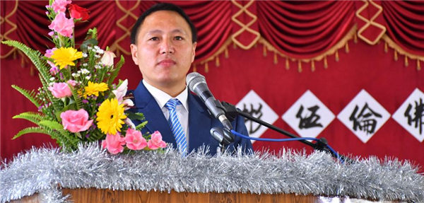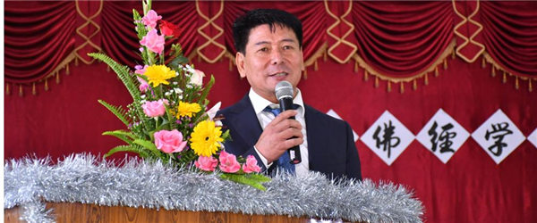 他首先对传承中华文化做出努力、贡献、甚至是牺牲的各界华人华侨表示深深的敬意,正是因为有了他们,中华文化在缅甸才得以很好的传承。他说,华文教育发展到今天,已不能继续停留在识字教学的初级阶段了,需要转型升级。华校要向规范化、科学化方向发展;教师要职业化,养成终身学习的习惯,教学应该是要向课堂要质量,而不是通过补习获得更高的分数。他说,彬乌伦拥有着最好的气候环境,是最适合人类居住的地方之一,彬乌伦佛经学校有孙会长这样的一群热心华文教育的董事,有十名中国教师,使用与中国大陆同步的教材,加上今后科学管理,实行教考分离,彬乌伦佛经学校一定会越来越好!