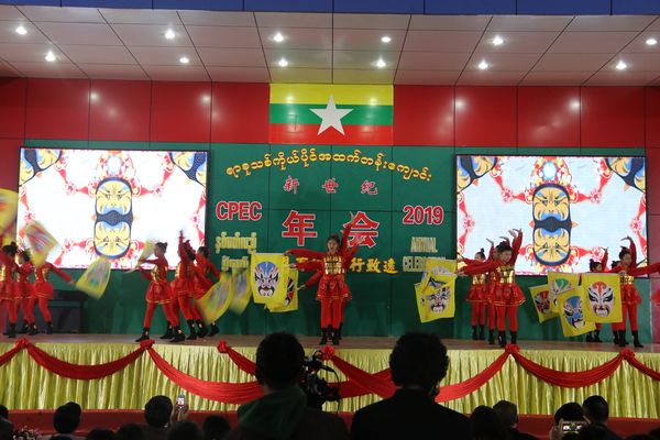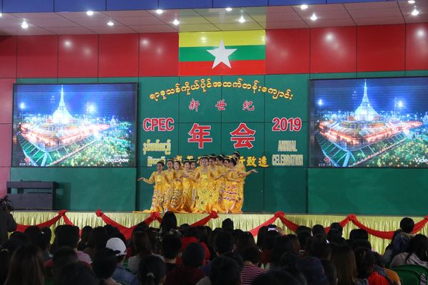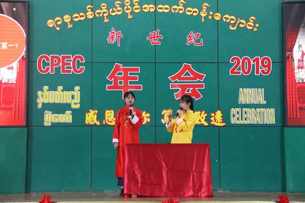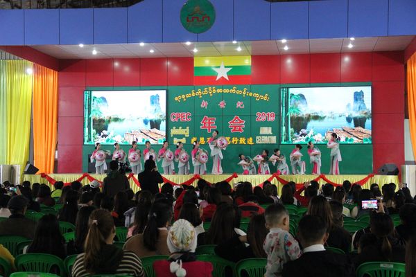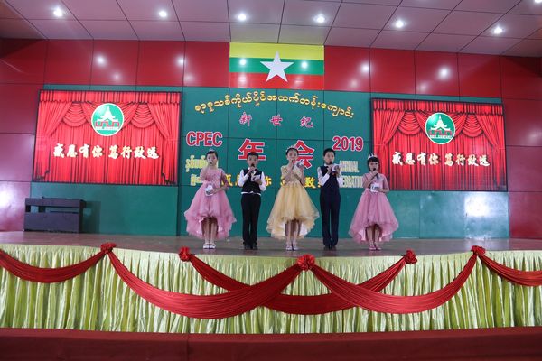 文艺演出环节,五位身着漂亮礼服的小主持人闪亮登场,他们使用中缅英三语主持,发音地道,吐字清晰,博得现场观众的阵阵好评。当他们宣布“2019年会文艺演出现在开始!”。