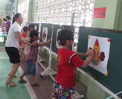 本次活动,学校全体教师精心准备,游园活动的项目丰富多彩:双人运球、投球、抢椅子、吹乒乓球、盲人贴画、钓鱼、悬珠入杯、答题等多种游戏。每一个游戏都很有趣,尤其是盲人贴画,小朋友们玩得无不开心,贴出来的画也是千姿百态。还有答题游戏,这可是考验小朋友的聪明的才智,但还是难不倒我们的小朋友,他们争先恐后地选中自己有把握的题目,进行回答,答对了还可以得到相应的奖品。此外,学校还为每位小朋友准备了小礼物,庆祝他们节日快乐。