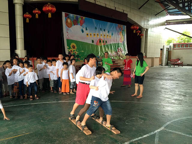 缅华妇女协会教育中心于六月一日在高解福山寺大礼堂举行庆祝“六一”国际儿童节,同时举行趣味运动会。上午八时多钟,教育中心的儿童们和家长们已欢聚在福山寺篮球场上,四百多名同学兴高彩烈排好队伍,迎接节日的到来。九时正,司仪宣布仪式开始,同学们以整齐有序的步伐,绕场一周,举行趣味运动会隆重的开幕仪式,接受正付会长和干事们、董事长和董事们、家长们和老师们的检阅。妇协主席李为华、校委会主任叶雪金先后致辞,她们首先向孩子们致以节日祝福,鼓励孩子们努力学习、天天向上,健康成长,并祝孩子们节日快乐。