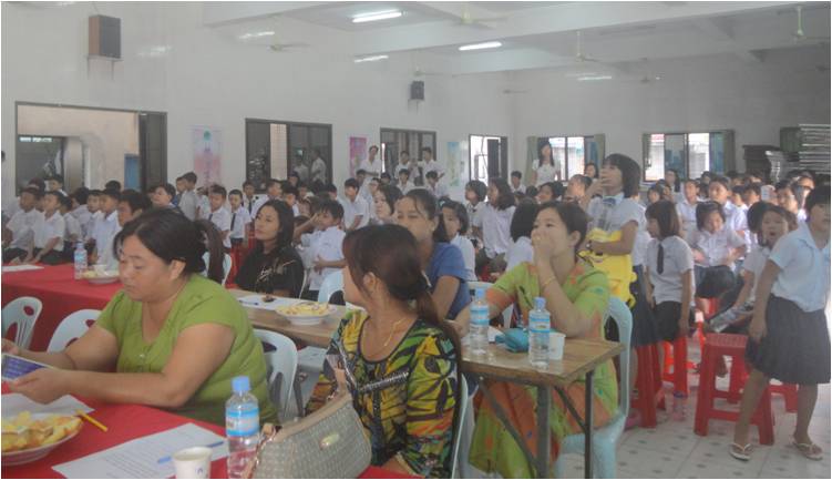 会议中掌声一片,热闹非凡。教师与家长经过亲密的交流后,更近一步地了解了孩子的思想及生活情况,同时,家长们也为学校给出了宝贵的建议。会中校长致词,他首先介绍了我校的师资力量,其中特别介绍了来自中国的三位外派教师,并表示学校将告别过去“茅草屋办学”的时代,新教学大楼将于投入使用。他说道,孩子是学校的柱梁、是明天的太阳、是未来的希望,学校将为孩子们提供最好的教学环境。他还宣布了我校学生留学国外的情况,鼓励同学们到国外学习,增长阅历。随后,学生们纷纷展示自己的中华才艺——京剧和民族舞蹈等。最后,学校为上学期在演讲、作文、书法、绘画、成语接龙、数学计算等比赛中获奖的学生颁发了奖状和奖金。