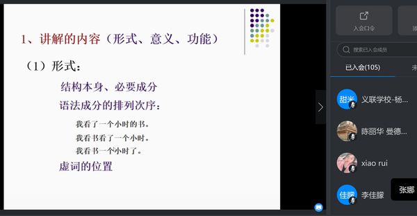 随后,华侨大学华文学院华文教育系主任张娜老师以《汉语语法教学》为主题,开始首场专题讲座。张娜老师从汉语语法的特点、语法教学的难点出发,深入浅出地讲解了语法教学,并结合自身多年教学经验,介绍了实用的汉语语法教学相关网络资源和参考书籍。讲座最后,张老师还与参会的本土教师进行了互动交流,答疑解惑。