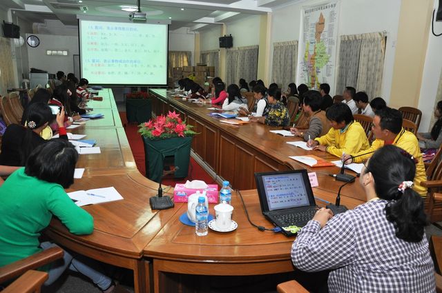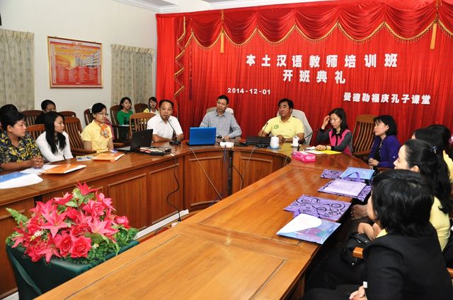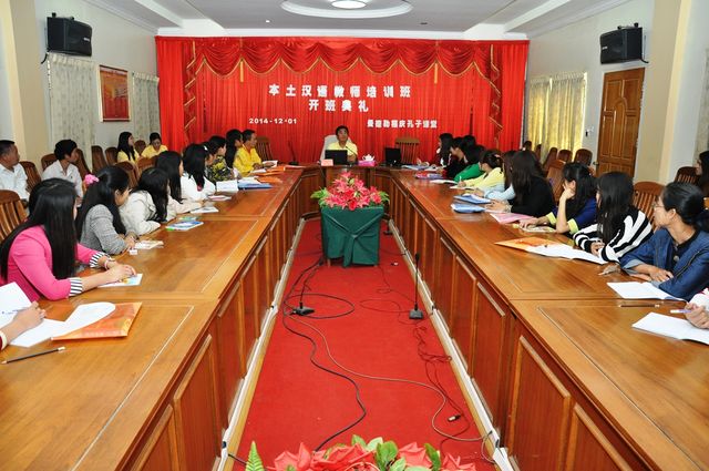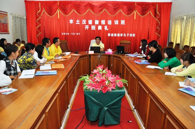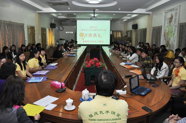 2014年12月1日,曼德勒福庆孔子课堂举办的2014年本土教师汉语培训班于本校多媒体“集思阁”会议室内举行。