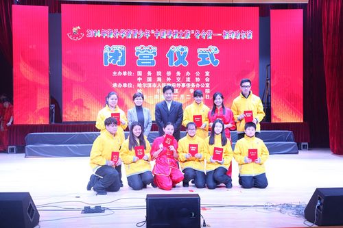 此次冬令营闭营仪式暨汇报演出在哈尔滨学院多功能音乐厅举行。据悉,哈尔滨市外侨办主任高会民、哈尔滨市外侨办副主任关宇平、哈尔滨学院党委副书记王利民等领导出席了闭营仪式。关宇平高度赞扬了营员们在冬令营活动中的优异表现,并对此次冬令营的所有工作人员表示感谢。随后进行了冬令营颁奖仪式,哈尔滨市外侨办及哈尔滨学院为缅甸曼德勒新世纪学校营队颁发了“最佳组织奖“和”“最佳精神文明礼貌奖”荣誉证书,并表彰在羽毛球、演讲、汉语知识大赛等活动中获得优异成绩的营员。
