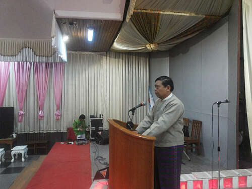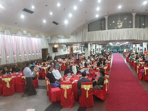 今日(1月12日)下午五时,于东方屋大礼堂内,曼德勒缅中友协为欢迎学缅语的中国留学生及果敢学生,举行迎新招待会。中国驻缅甸曼德勒总领事馆靳仪麟副总领事及吴毅领事、缅中友协会会长吴波敏、副会长及协会会员、曼德勒外国语大学校长及缅文系教授、教师、曼德勒大学MBA 校友会代表、媒体界代表、来自中国高校的90余名学缅语留学生、果敢地区缅文班的40余名学生。。。等,近200人参加了聚会。