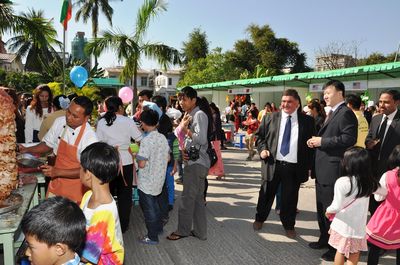 今日下午(14:00)时曼德勒于Horizon 国际学校隆重举办美食及文化节活动。福庆孔子课堂在中国驻曼德勒总领事馆的领导之下,应邀参与了该活动。此次活动有中国、英国、美国、土耳其,印度,菲律宾等国家的驻曼德勒总领馆、领事馆或各国代表处,以及缅甸学生代表,纷纷展示了各国的文化展品及食品风味,并销售特产美食。这是中国驻曼德勒总领馆首次参与这样的活动,也是中国文化首次在缅甸曼德勒国际学校当中亮相。