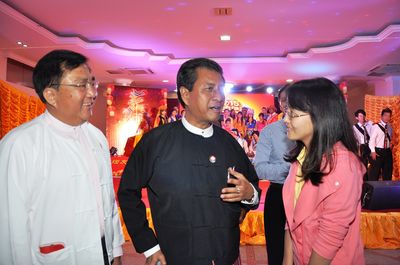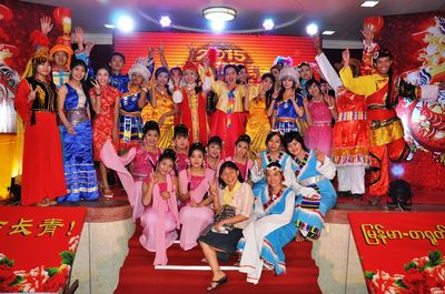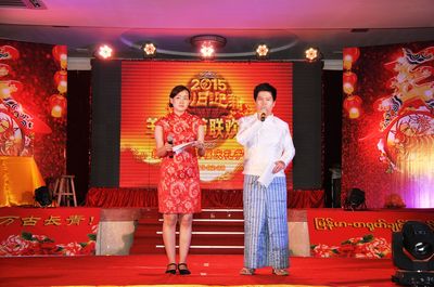 缅甸曼德勒福庆孔子课堂的“2015年辞旧迎新羊年春节联谊会”于2月8日晚上七时,在福建同乡会大礼堂内,隆重举行。曼德勒省政府社会部部长温莱博士及家人、中国驻曼德勒总领事馆王愚总领事为首的领事、曼德勒外国语大学校长、教授及系主任、缅中友好协会代表、曼德勒工商管理组织会长及代表、曼德勒各报刊记者作家、果敢同乡会代表、中国留学生代表、各社团华校领导师生满园春色地参加了孔子课堂春晚。