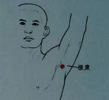 腋窝的极泉穴是心经的重要穴位,可以去心脏的郁火毒素,应常常去按揉,以疏通这口井。