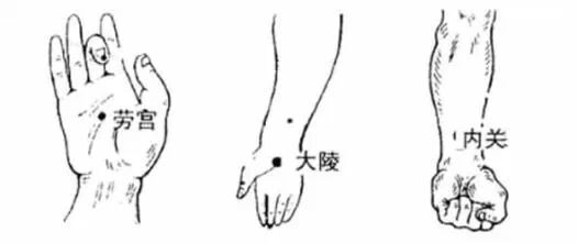 心包经有三个穴位要经常按揉,劳宫穴、大陵穴、内关穴。这三个穴位都在手前臂和手掌上。劳宫穴在手掌心,第二、三掌骨之间偏于第三掌骨,握拳屈肘时向中指尖处;大陵穴在腕横纹的中点处;内关穴在前臂掌侧,大陵与曲泽的连线上,腕横纹上2寸。常按可宁心安神,清心泻火。
