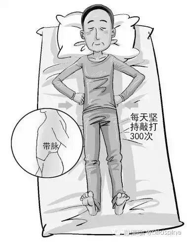 “带脉”有“总束诸脉”的作用,经常敲击能提高排毒能力,改善便秘。腹部“游泳圈”,正是中医“带脉”所绕之处。方法很简单:每晚睡觉前躺在床上,手握空拳,轻捶自己的腰部两侧,每天坚持敲打300次。需要注意的是,敲击时用力并不是越大越好,以身体能承受为宜。