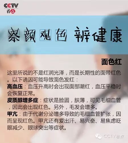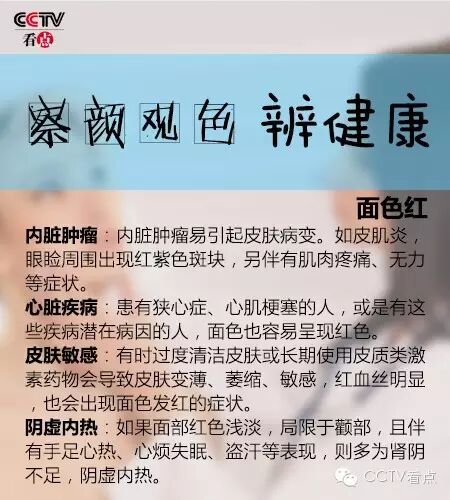 当然,中医的诊断技巧非常丰富,也与个人经验有很大的关系。这里只能讲到一些皮毛的现象。虽然不一定能准确断病,但可以为自己提个醒,要重视身体的变化,因为这有可能是重要的健康信号。
