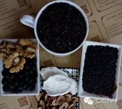 材料:黑豆50克,黑芝麻30克,黑米20克,碎核桃仁10克,去核红枣10克,冰糖适量。