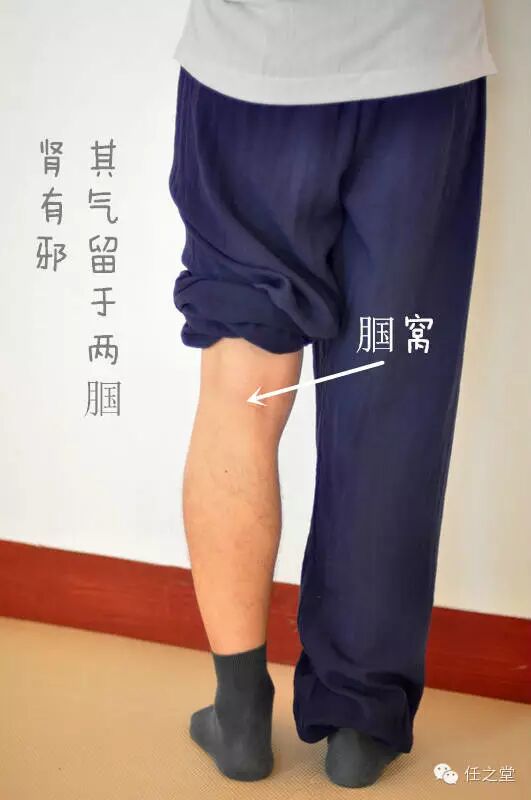 腘窝,即我们的委中。大家观察一下自己,坐着的时候,腘窝这里是不是折叠的的状态?而弯弯角角的地方,都是容易雍滞气机之处。