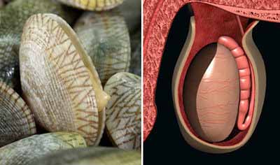 5. 蛤蜊——睾丸 蛤蜊等鱼介类所含丰富的核酸,是制造遗传因子与精子时不可缺少的物质。