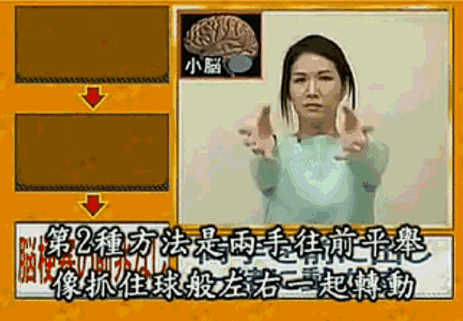 ▲ 双手向前伸直,闭上双眼,然后模拟抓球感觉双手同时来回转动,慢慢加快速度,如果变快也不乱掉则表示没有问题。