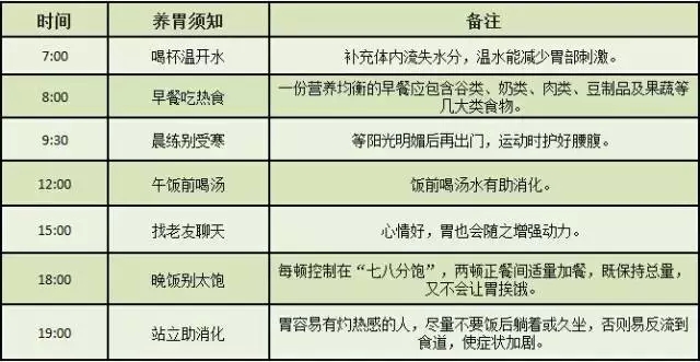 对胃不好的人而言,生活有规律尤为重要,医生们总结了一个“养胃时刻表”: