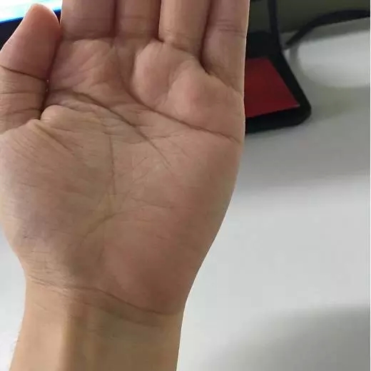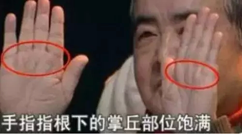 正常人手指指根下方,掌丘这块肌肉不是特别饱满的。而有的人这块肌肉特别饱满,都隆起了,这两个饱满的地方之间,都形成一个沟。