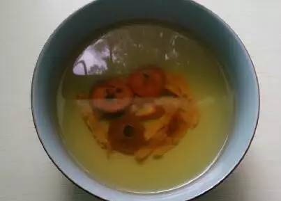 做法:菊花和山楂用清水洗净,锅中水沸后放入山楂,大火煮沸后转小火约10分钟,最后加入菊花煮沸,即可关火。