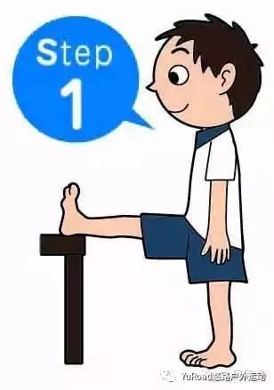 将右脚抬起,让右侧膝盖慢慢伸展。