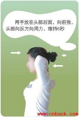 颈椎病的锻炼方法很多,但是传统的锻炼方法如五禽戏、八段锦等,往往锻炼的时候耗时多、难以掌握,而现代社会人们生活压力大,生活节奏快,常常没有时间去练习。为此,脊梁网根据颈部运动解剖规律,的整理提炼出一系列简便易行的颈项肌功能锻炼操,强调静力收缩的运动锻炼方式,从而更快捷有效地达到锻炼目的。这套锻炼操,无论是在家还是在办公室的休息时间均可练习。