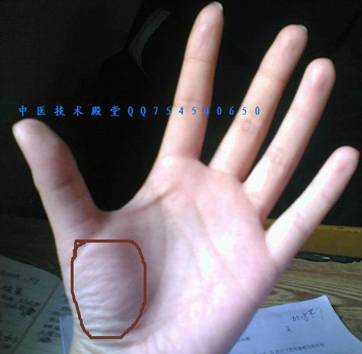 人的手掌正面拇指根部,下至掌跟, 伸开手掌时明显突起的部位,医学上称其为大鱼际。