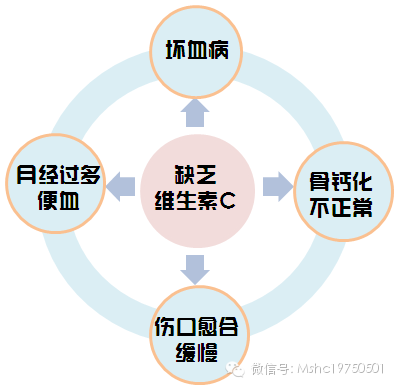 我们已经知道:人体长期缺乏维生素C会导致坏血病。这是一种可怕的疾病,发病时患者全身乏力、虚弱、精神抑郁、面色苍白、牙龈肿胀、出血,并可因牙龈及齿槽坏死而致牙齿松动、脱落。此外,缺乏维C还可以导致骨钙化不正常,伤口愈合缓慢,并可能引起女性月经过多及便血。