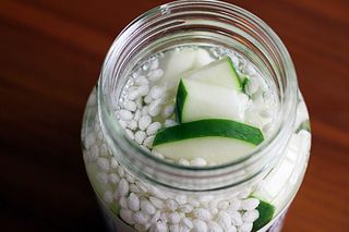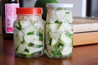 泡制方法:先将青皮木瓜表面洗净,然后切成块状,连同木瓜子一起放到大的带盖玻璃瓶里,倒白酒完全浸泡,木 瓜与白酒的浸泡比例为2 :3,浸泡时间为一个月。