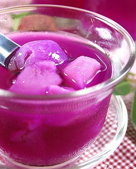 功效:单独吃荔枝容易上火,可用荔枝来煲糖水却是清火祛燥。加入马蹄煲出来的糖水清甜好喝,再淋入桃红色的火龙果汁,颜色实在是惊艳