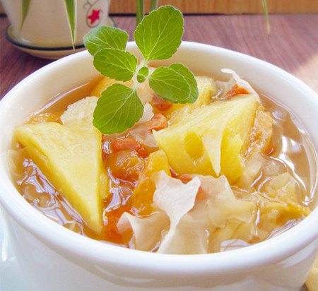 功效:枇杷是止咳润肺的好食材,用白木耳和梨子清热解毒,效果超赞