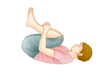 2.躺在地上,两脚屈膝,两手环抱住小腿,抬头收腹拱背,身体往后从尾椎、腰椎、胸椎一节一节碰触地面,如此前后滚过来滚过去。