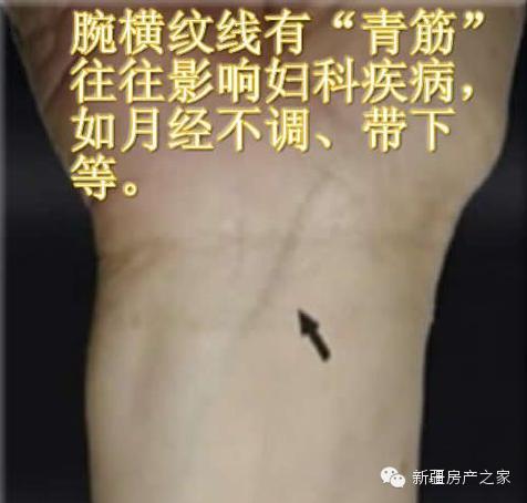(2)腕部横纹线有青筋,往往提示妇科疾病,如月经不调,带下等。