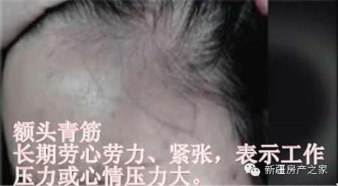 2.额头有青筋,提示长期劳心劳力,紧张,工作压力或心情压力大。