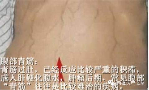 2.腹部青筋,俗话说;“青筋过肚”。这已经是比较严重的积滞;成人肝硬化腹水,肿瘤后期。腹部青筋往往是比较难治的疾病。