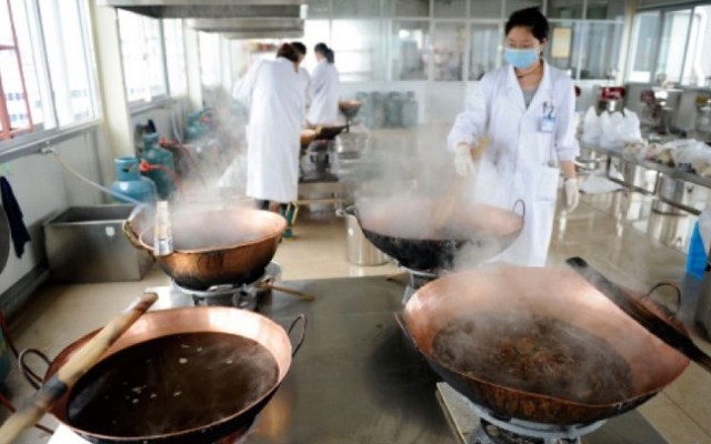 2013年10月31日,浙江省东阳市中医院的工作人员熬制膏方。每年的立冬前后,浙江省东阳市都有不少市民选择膏方进补,各医院针对亚健康人群推出的“膏方门诊”成为热门。