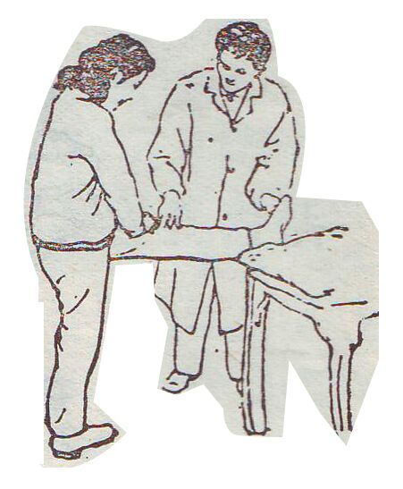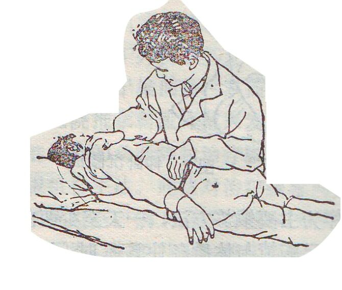 (1)俯卧鱼跃势:病人俯卧在平板床上,腰部挺在板床上,头、足两头向上翘起十次以上。