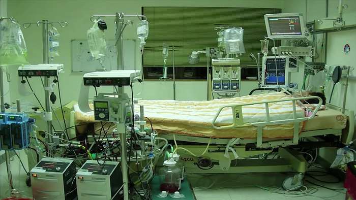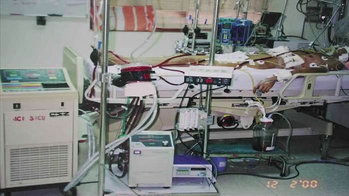 到台大医院的时候,因为几乎没有心脏功能,就用了两台叶克膜。图片上有两台主机。