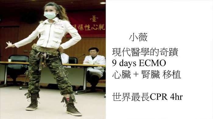 医学文献上,CPR(心肺复苏术)时间最长、还能被救回来的,就是这个案例。她从国泰医院一路CPR到台大医院,要装叶克膜的时候,发现强心剂已经打了100支了,股动脉和股静脉已经缩得比铅笔还细了,管子放不进去,只好继续用CPR,到开刀房直接锯胸,从上面放叶克膜。