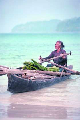 通常而言,高当港(Kawthaung)是丹老群岛之行的起点,我们离港3天,遇到的船只寥寥无几,其中大多数是莫肯人的卡邦船,这种轻便小艇又称“母亲船”,长约10米,老一辈的“海上吉普赛人”至少有半辈子生活在它上面。随着目的地越来越近,独木舟和简陋的渔船也慢慢多了起来。时间所限,我们重点探索群岛中南部,那里最大的居民点要数博超岛(BoChoisland)上的马基奥恩加莱(MaKyoneGalet),人口约600名,1/4是莫肯族。