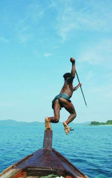 无论如何,“海上吉普赛人”的生活中仍有一些古老的东西无法被磨灭,就像他们的游泳方式。无意间,我发现一群莫肯孩子紧跟在“科罗娜二号”后方嬉戏,他们划水的方式与其说像人,倒不如说是鱼。更惊人的是,他们用标枪捕鱼的效率非常高,几乎出手必中;原来,莫肯人打小就在水下练就了非凡的视力,懂得调节瞳孔令藏在暗处的猎物无所遁形。