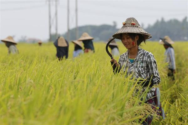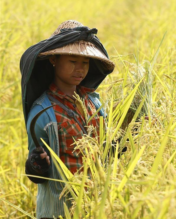 缅甸农民收割水稻(组图)