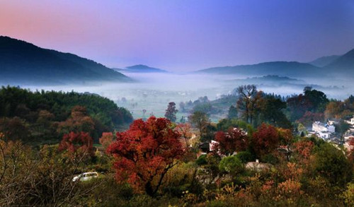 这里的秋色被誉为全国四大秋色之一。每到秋天,村落田野中错落有致的乌桕树叶子红了,形成一幅迷人的田园风光画卷,塔川秋色也因此得名,并名扬四海。塔川乌桕树经过霜降,由绿变黄,由黄变红,中间呈七彩颜色。