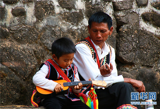 澜沧县酒井老达保寨内,拉祜族儿童从小学习吉他演奏