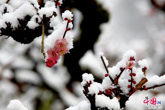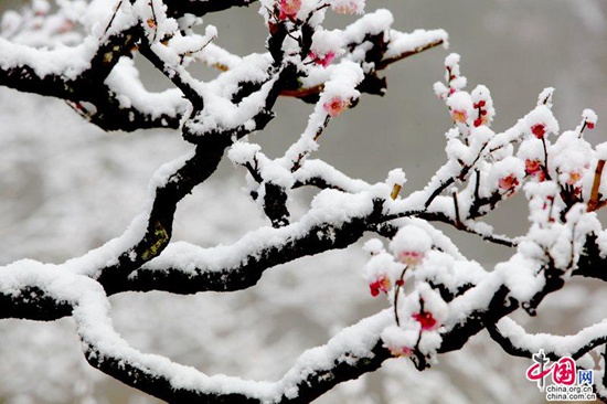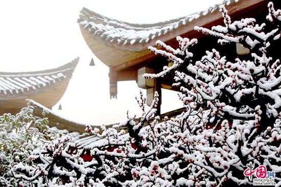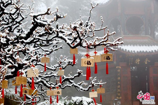 瑞雪压枝腊梅问春 千年古刹踏雪寻梅
