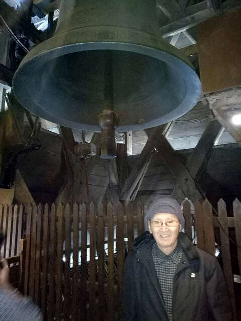 然后再走完近200步左右后,就到了第二楼层 。在第二楼层有一道空中走廊,好多游客都在这里照像。通过走廊可以到第三层楼两个铜钟的地方 。从这里上第三楼也要走一百多步的台阶。三楼处有两个铜钟,它们现在已固定在一处,没法去敲响它了。在三楼也可以看到游客们取远近的镜头拍纪念相 。从地面到第三层的钟楼处共计有400步台阶。