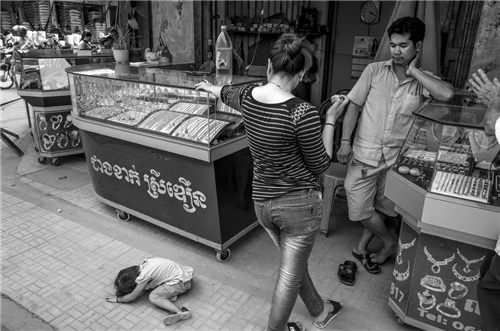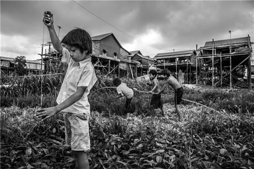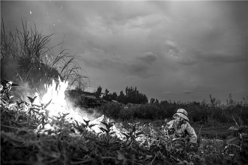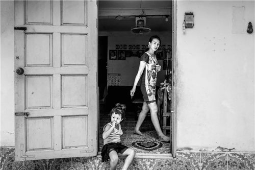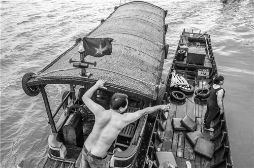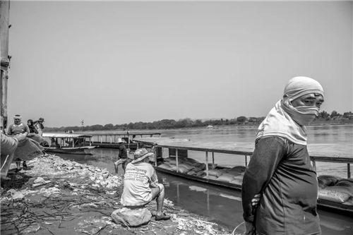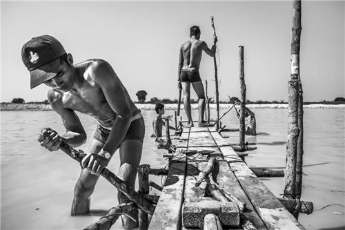 曾:《湄公河》是黑白影调的纪实摄影作品,《河边的诉说》整体营造的是一种荒凉的氛围,而《跨江》则更是用一种对比的方式去用照片展开故事的叙述,针对不同的地点不同的影像项目,是怎么把握照片的整体基调,来突出作品本身的特色和风格的?