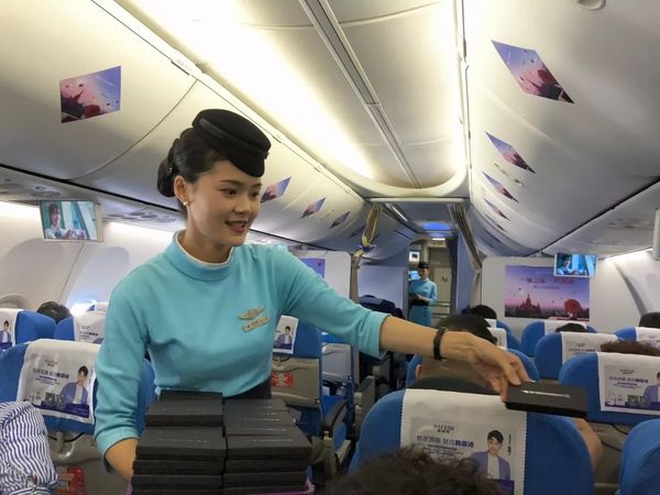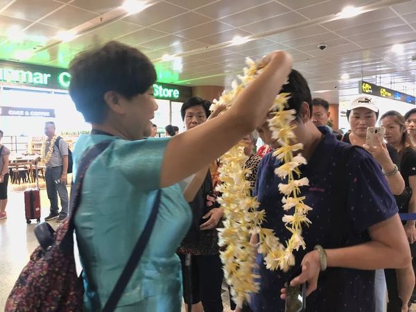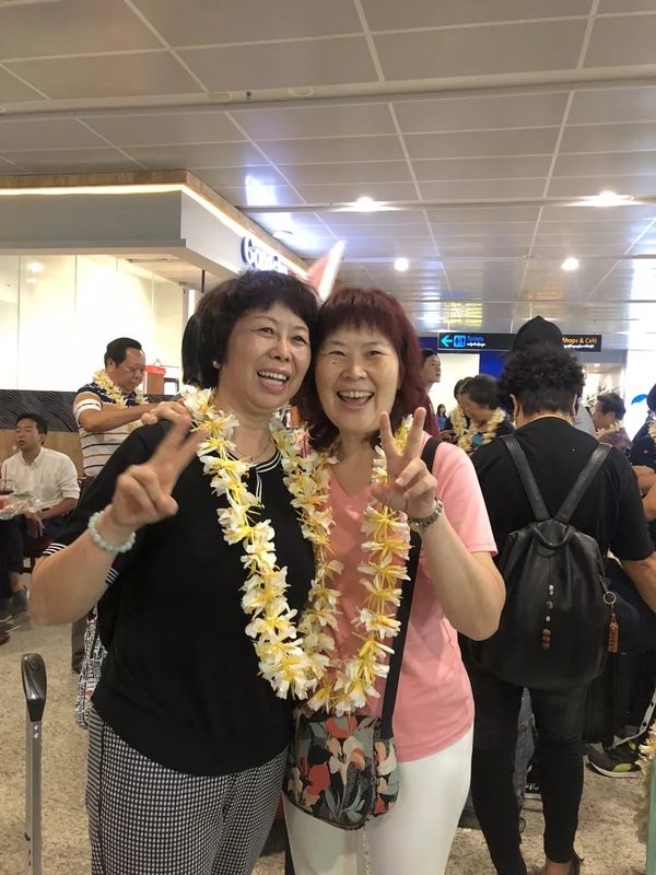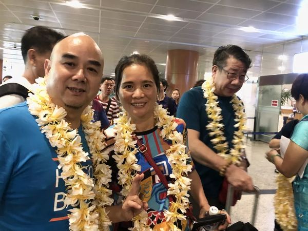 平安落地后首航贵宾团收到象征心意的花束、花环