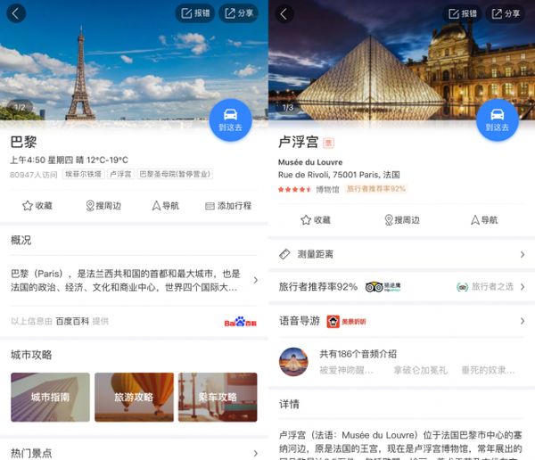 随着经济快速发展,更多国人看世界和感知异国文化的愿望不断得到释放,进一步刺激着旅游配套产品“提质升级”。百度地图在出境游服务方面,便是典型地从“单纯提供信息”向“提供服务”探索。作为唯一提供全球服务的中国出行品牌,百度地图现已覆盖全球,境外POI覆盖率达98%。