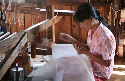 这里有一家名为Myat Pwint Chel的纺织工坊,缅文的意思是“丝绸和荷花”。