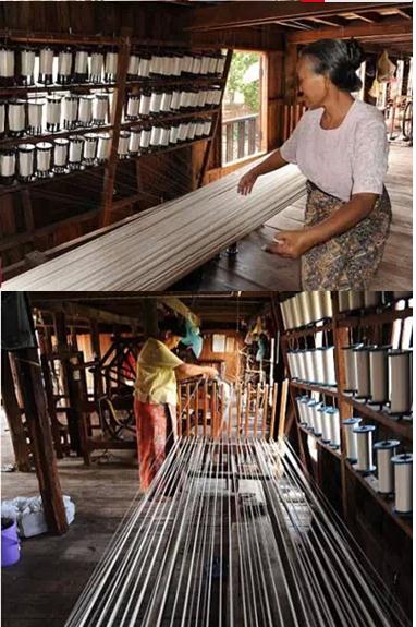 缅甸掸邦的茵莱湖上,坐着小船离开巴东族船坞,驶入一片密集的水上丛林里,便抵达了一个以织布闻名遐迩的村庄——In Paw Khone。
